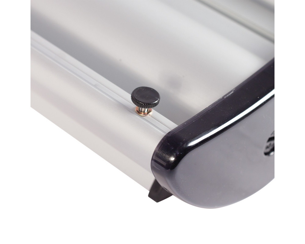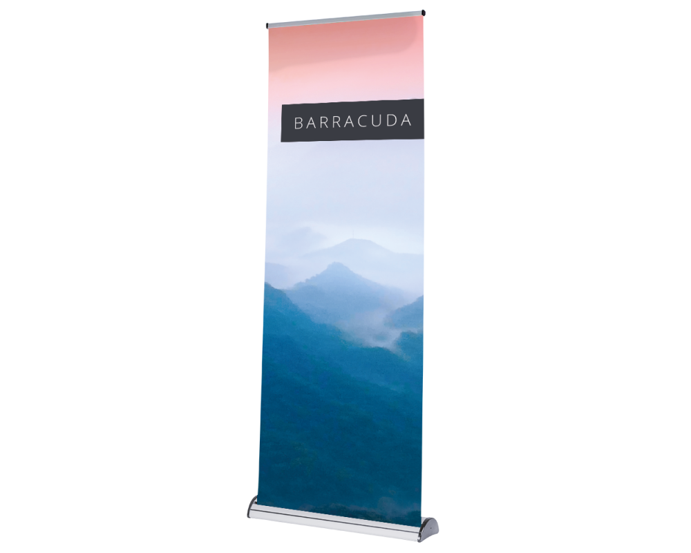 Das Premium-Roll-Up Barracuda bietet eine zuverlässige und dauerhafte Präsentation Ihrer Werbebotschaft. Das elegante Gehäuse aus eloxiertem Aluminium ist an der Vorderseite mit einer raffinierten Linie verziert. Das Barracuda ist höhenverstellbar und verfügt über eine große Innenaussparung für das Grafikmaterial und einen Straffer.